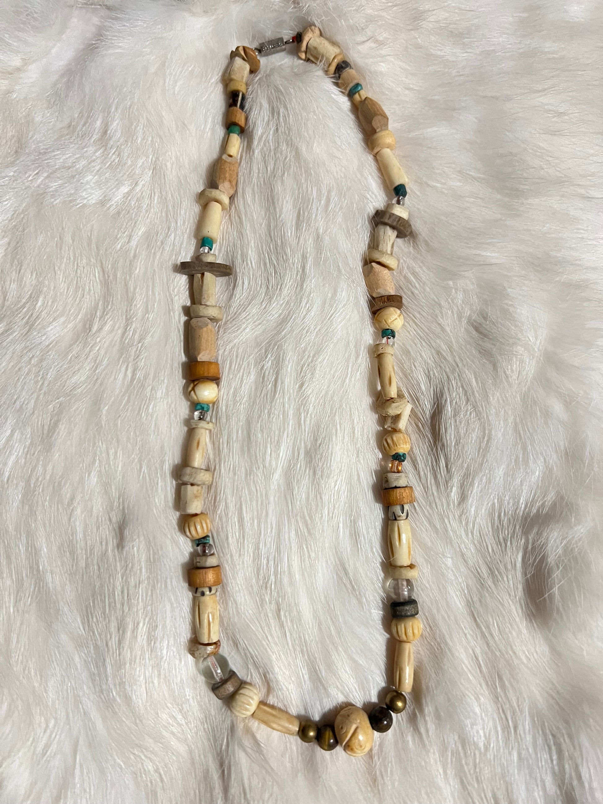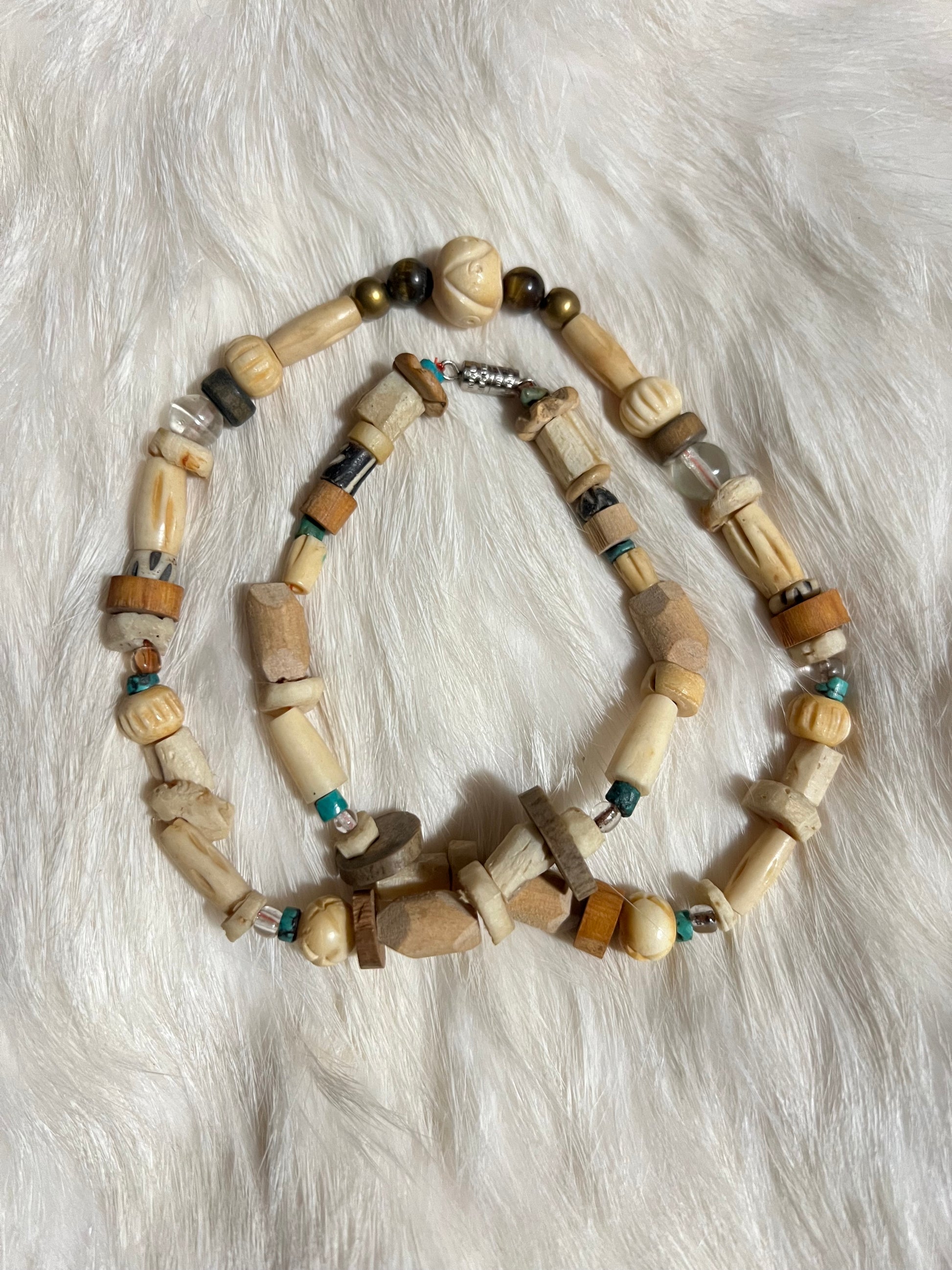 Carved bone, wood, glass, and stone simple layering necklace