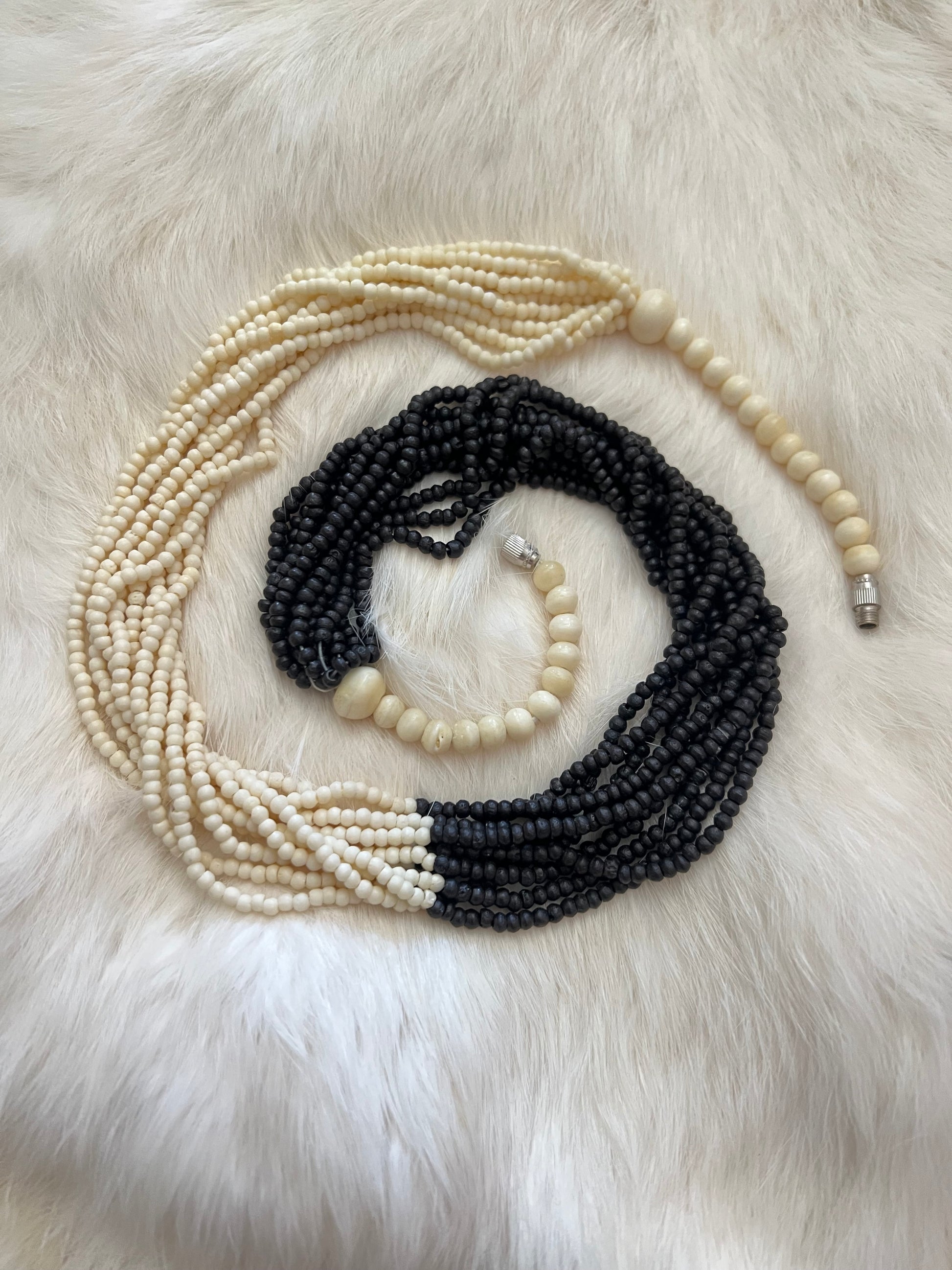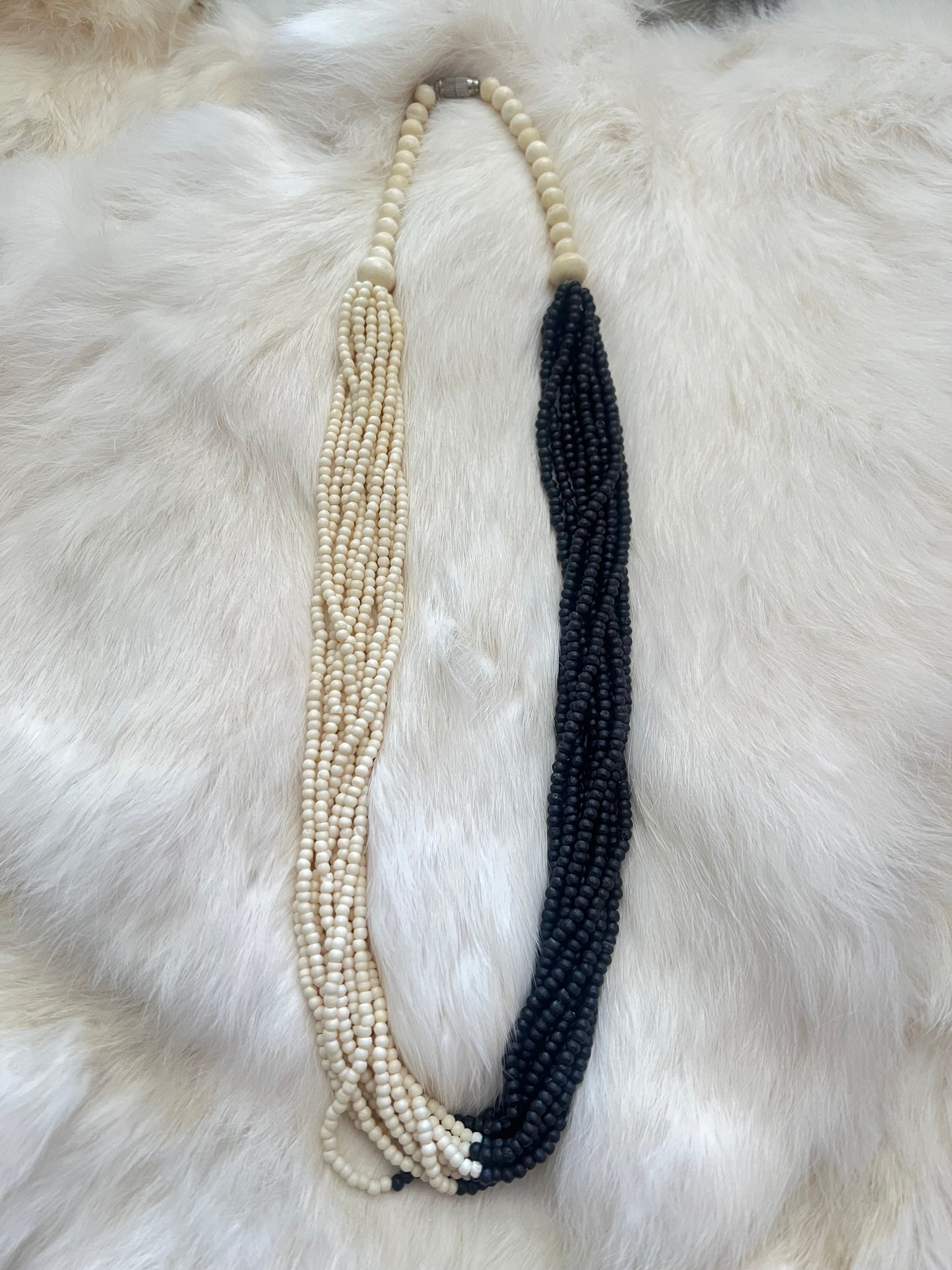 Layered dyed bone statement necklace with brass clasp