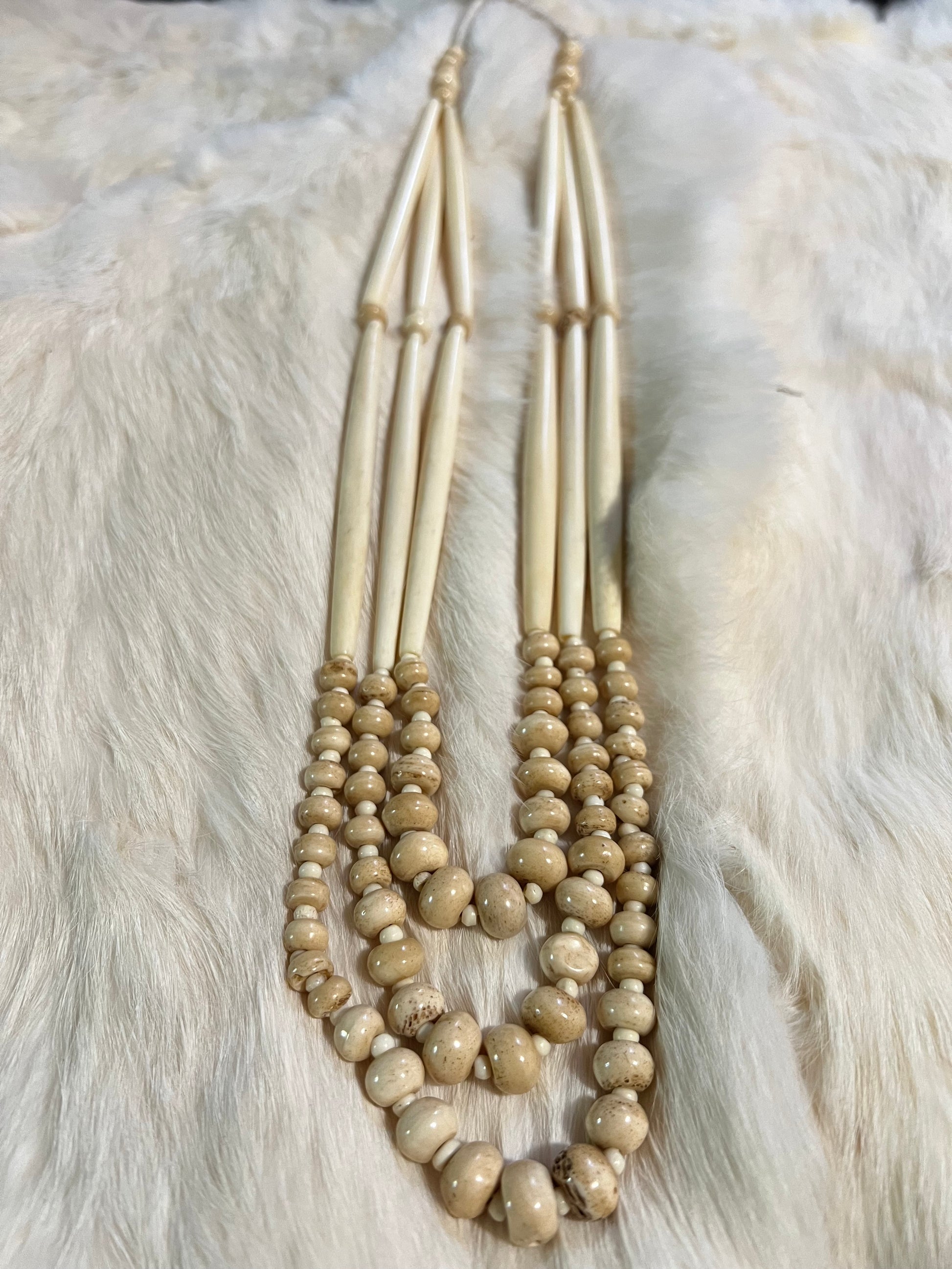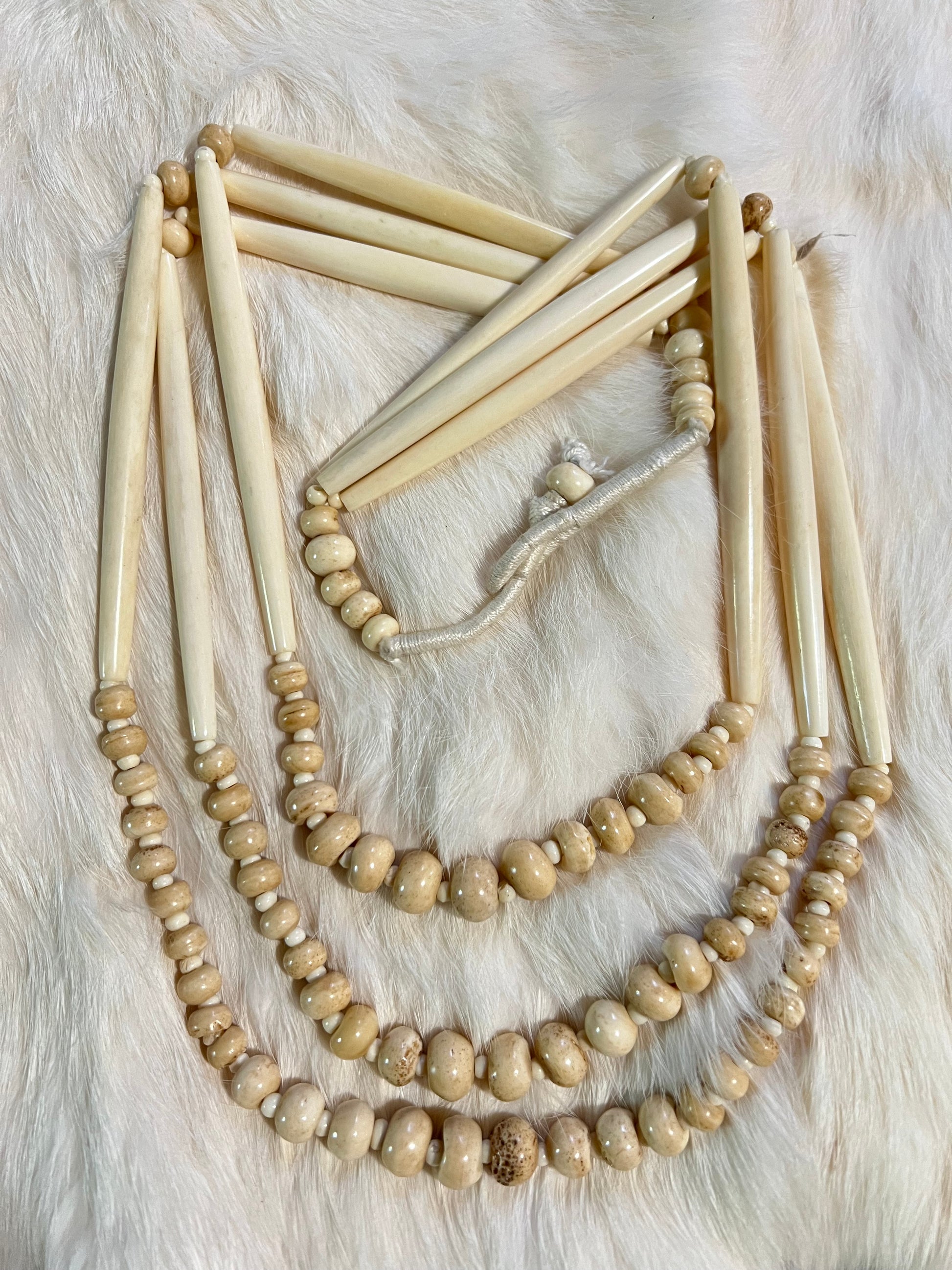 Layered carved bone with brass accents