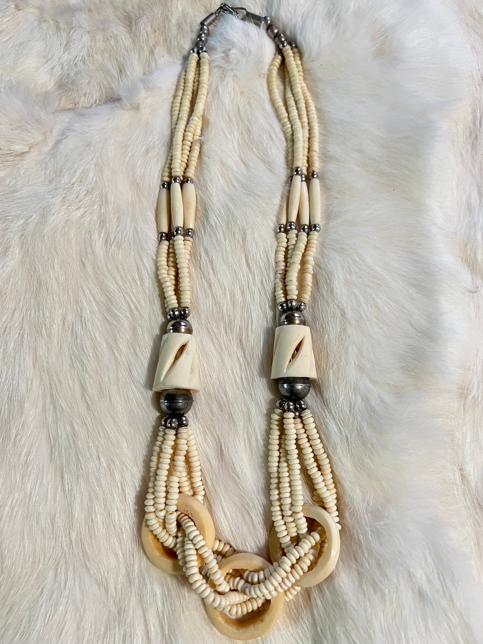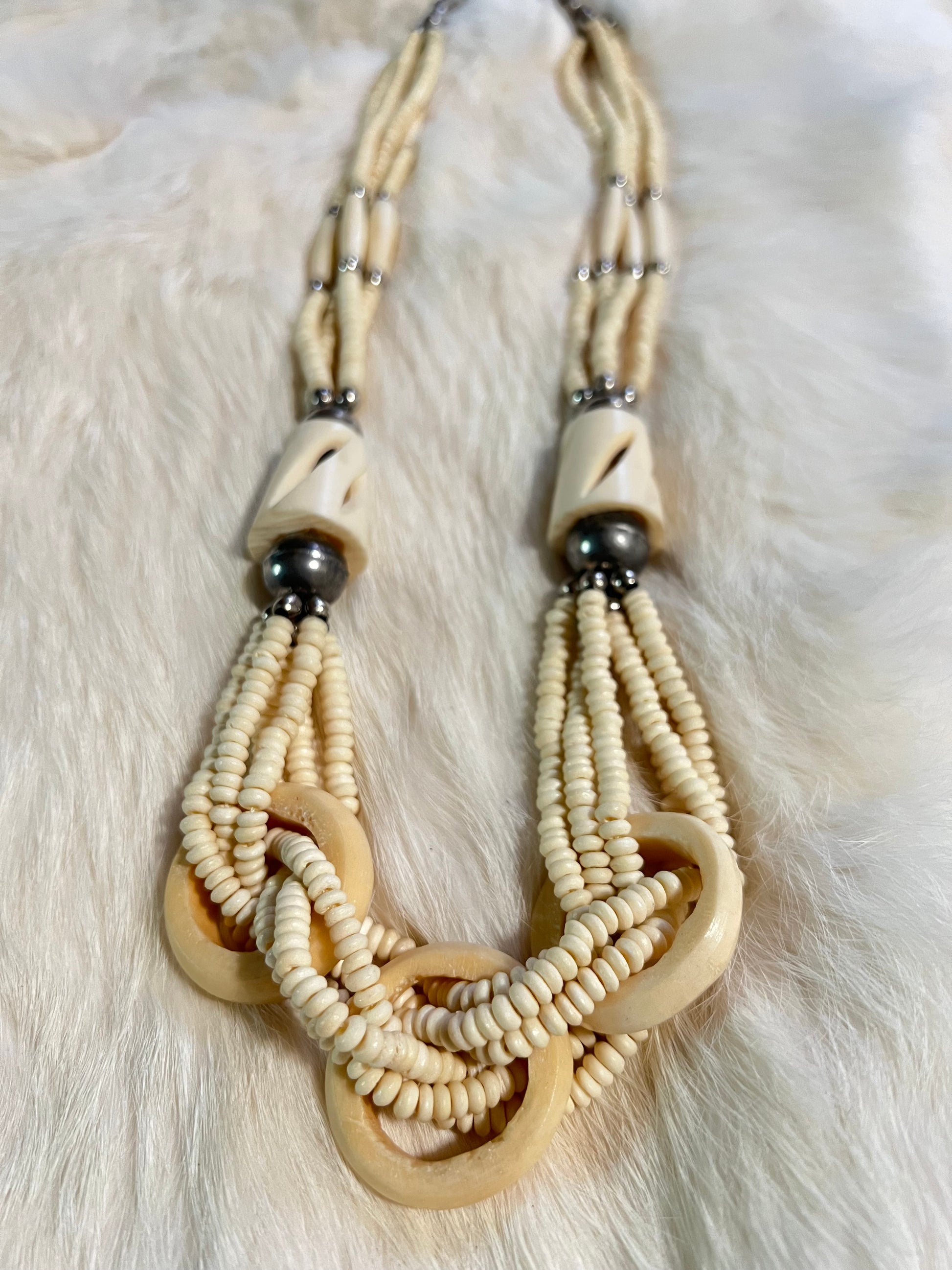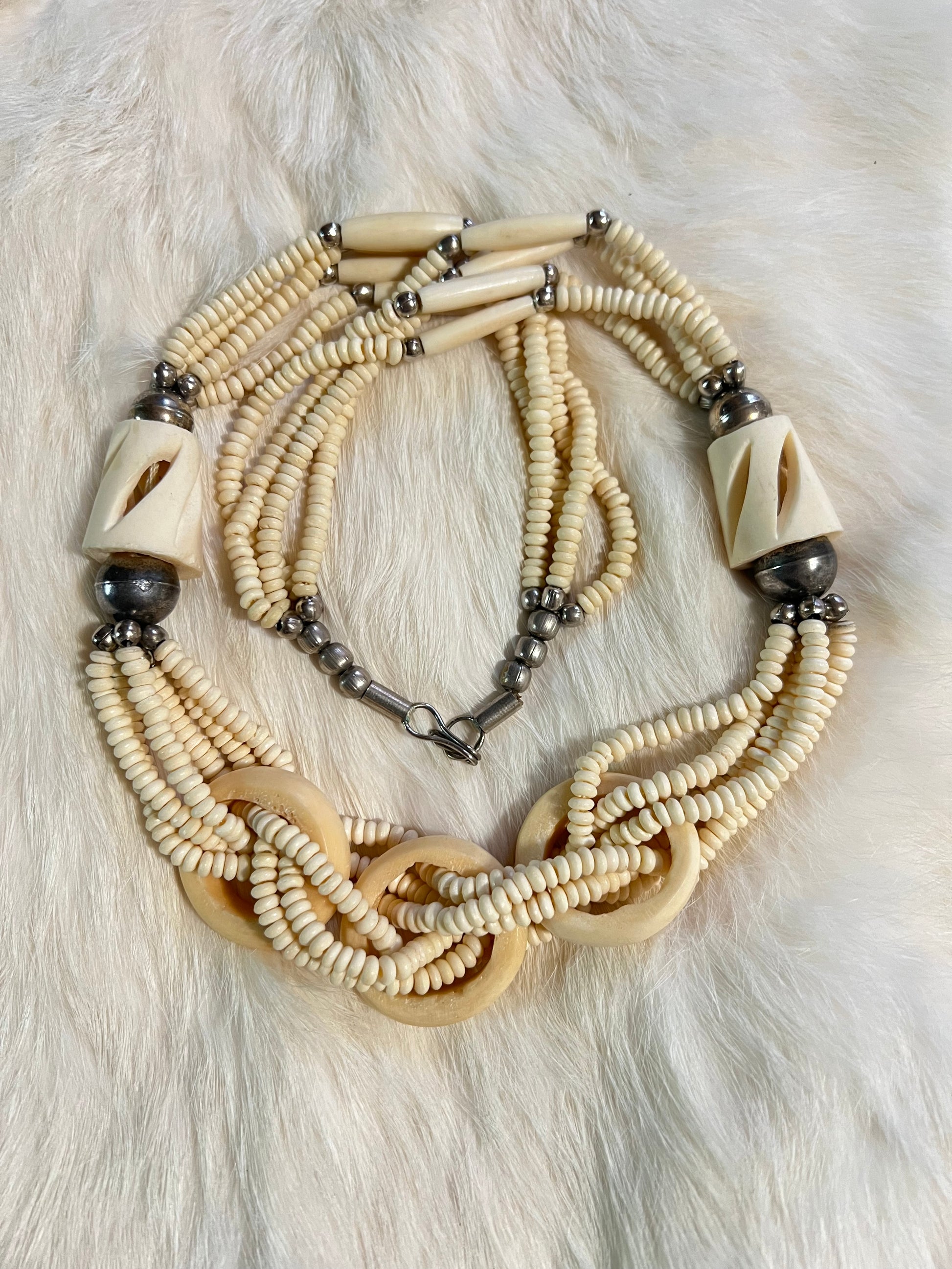 Layered carved bone with brass accents